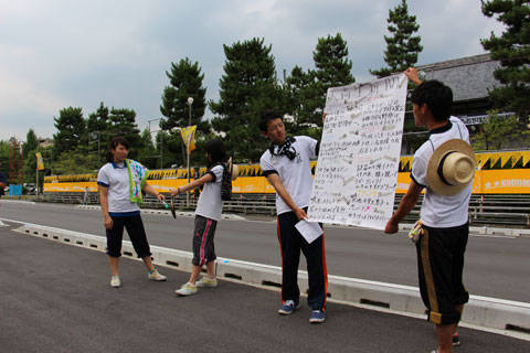 立教178年こどもおぢばがえり「天高生ひのきしん」 2015年08月31日(月) |行事| 「立教178年こどもおぢばがえり」が、7月26日から8月4日まで「笑顔ひろがれ!たすけあい」のテーマのもと今年も親里で開催された。多くの本校生徒がひのきしんに参加し、真夏のおぢばで笑顔と感動、喜びいっぱいの汗を流した。 「天高生ひのきしん」は、7月15日から24日までの準備期間(A・B期間)に207名の生徒(クラブからの参加者を除く)が参加し、今年も少年ひのきしん隊宿舎の準備や会場周辺の整備などにあたった。 引き続いて、7月25日から8月5日までの本期間(C・D期間)のひのきしんには、719名の生徒が参加し、8つの行事会場にて、受付・誘導・会場整理などの作業にあたり、夜の「おやさとパレード」には、男子生徒は沿道整備や子ども達とのゲームなどに、女子生徒はパレード最後尾のプラカードを持つ係員として、疲れを見せることなく、元気に笑顔でそれぞれの持ち場立場においてひのきしんに励んだ。一方、吹奏楽部・弦楽部・バトントワリング部・ダンス部の計237名は、「鼓笛オンパレード」「こどもミュージカル劇場」「バラエティ178」「おやさとパレード」にそれぞれ出演し、日頃の練習の成果を発揮して、多くの子供達に夢と感動を与えた。今年度も暑い日が続いたが、大きく体調を崩す者もなく、無事にひのきしんをしてくれたことと、3年生の参加者が多かったことが印象的であった。 尚、本年まで3年間全期間(A~D期間)参加者は、橋本廉君・栗本洋盛君・乙守真実さん・田村元明君・十川美佳さん・野呂朱里さんの6名であった。 【天理高校生係】 おぢばがえりひのきしん 成功の立役者! 今年も参加者が円滑に、そして勇んでひのきしんができるようにと、毎日黙々とひのきしんに励み、陰で支えてくれたのが、天高生係の生徒たちである。今年は十川美佳さん(3年)・橋本廉君(3年)・増田みささん(3年)・山崎凜太朗君(3年)の4名が努めてくれた。天高生係は、7月1日から8月5日までの約5週間に渡って、参加カードの整理、名簿や名札・期間中の目標作成、手書きの天高生新聞の制作、Tシャツや帽子の整理など多岐にわたる業務にあたり、縁の下の力持ちとしてこどもおぢばがえりひのきしんを支えてくれた。 土持ちひのきしん現場にて 天理プールにて あちこちランドにてひのきしん バラエティ178にてひのきしん-ダンス部 バラエティ178にてひのきしん-バトン部 天高生係の4名 « 前のページ自転車交通安全教室を開催次のページ »夏期合宿勉強会