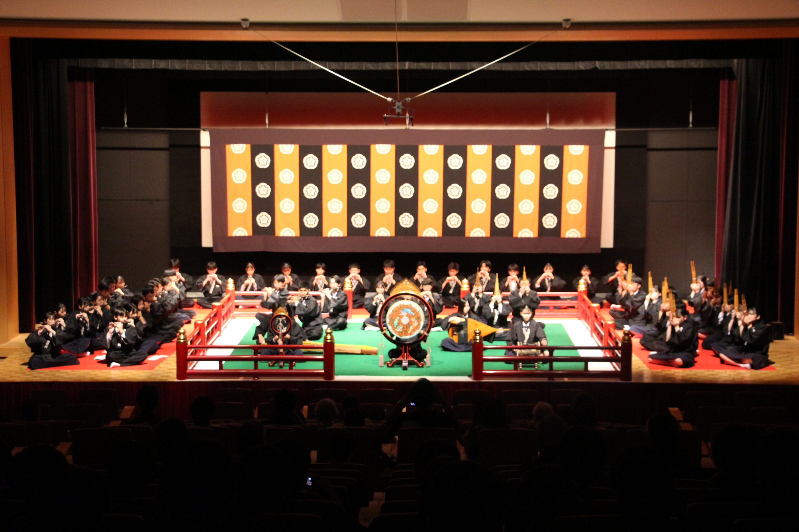 求道部雅楽班:立教186年管内高校雅楽合同演奏会 2023年06月21日(水) |クラブだより|文化系|求道部 雅楽班| 6月11日、陽気ホールにて、第1部求道部雅楽班と第2部雅楽部による、立教186年管内高校雅楽合同演奏会が開催されました。当日は、第1部が舞楽「胡飲酒」、第2部が舞楽「抜頭」、合同で管弦「陪臚」、「越殿楽」が演奏されました。第1部、第2部合わせて99名の生徒が、若さ溢れる演奏を行ってくれました。 天理教校学園の閉校に伴い、天理高校第1部、第2部での合同演奏会となりましたが、管内学校の雅楽発展のため、今後も継続して行っていきたいと思います。 ※写真をタップすると大きく表示されます « 前のページソフトボール部:2023年度インターハイ奈良県予選 優勝次のページ »吹奏楽部:第40回定期演奏会 開催