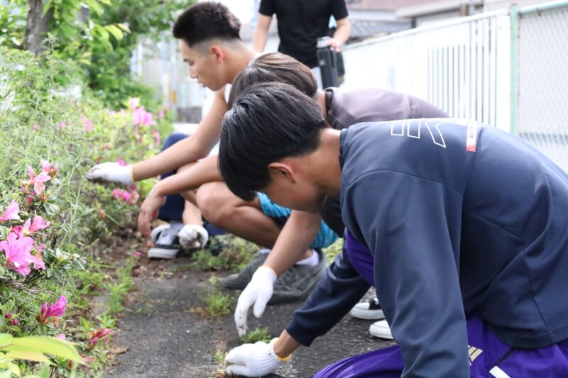 北寮ふしん寮 全教一斉ひのきしんデー・新入生歓迎会(令和6年度) 2024年05月07日(火) |北寮ふしん寮|学寮だより| 4月29日(月)に全教一斉日のきしんデーに合わせて北寮ふしん寮では寮生238名、職員28名、職員家族他10数名とで寮周辺の除草ひのきしんを行いました。当日8時45分に寮前に集合し、寮長先生から「日頃お借りしている身体に感謝して勇んでさせていただきましょう」との話の後、自治会会長、藤井利希さん(2階3年)が表統領先生のお言葉を代読しひのきしんを開始しました。ひのきしんの間、過ごしやすい気候で、普段使わせていただいている寮前の広場や、寮周辺の道路の除草など互いに勇ませ励ましあいながら各担当の清掃に汗を流しました。 その後16時より寮前広場にて新入生歓迎焼肉会を行いました。寮長先生の挨拶の後、自治会長から「2,3年生の皆さんは1年生の皆さんをもてなしてあげてください」と話があり、その後一斉に合掌し焼肉を和気あいあいとお腹いっぱい食べました。 寮長挨拶 自治会長挨拶 ひのきしんの様子 ひのきしんの様子 ひのきしんの様子 焼肉会の様子 « 前のページ北寮ふしん寮 教祖御誕生祭まなび (令和6年度)