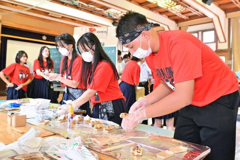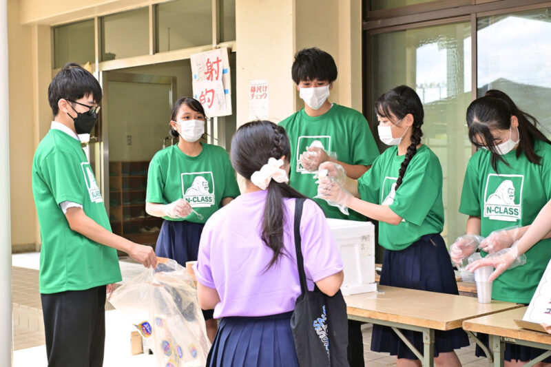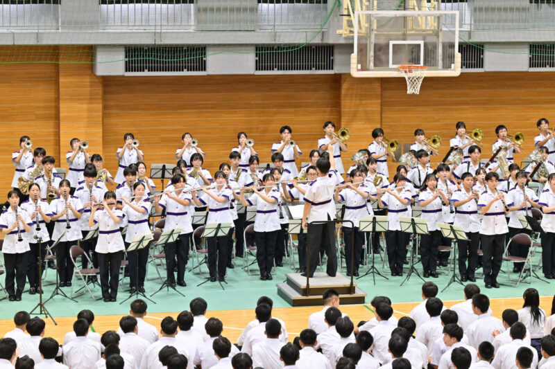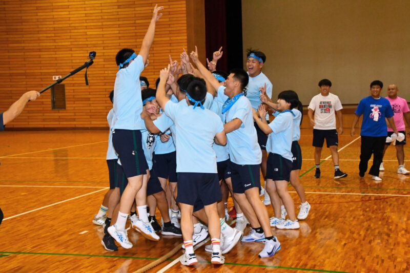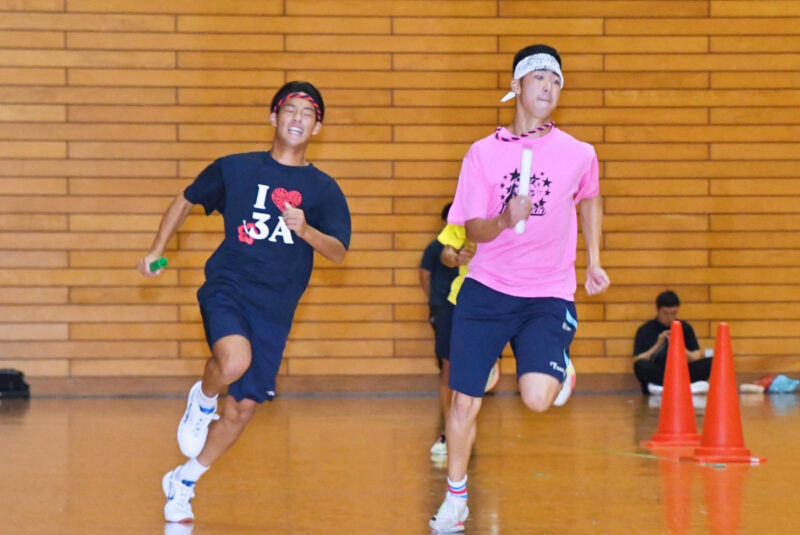 天高祭 2025年10月16日(木) |行事| 9月18・19日、本校文化祭と体育祭を兼ねる天高祭を開催しました。 《主な日程》1日目(9月18日)オープニング(総合体育館)、クラス出店、クラブ展示、文化部発表(総合体育館) 2日目(9月19日)室内運動会(天理大学杣之内第一体育館)、天高バラエティー(総合体育館) ◇オープニング総合体育館に全校生徒が集まり、吹奏楽部による演奏を聴き、盛り上がりました。今年は校長が指揮者となってのサプライズ企画曲も演奏され、会場を沸かせました。 ◇クラス出店、クラブ展示・発表1・2年生は各クラスで企画したお化け屋敷、縁日など、様々な出店がありました。3年生はクラスごとで制作したTシャツを着用し、角煮丼、クロッフル、焼きそば、ラッポッギ、フランクフルトなど多彩な飲食メニューを販売しました。 クラブでは、書道部、美術部が作品を展示しました。また、茶道部は抹茶やお茶菓子を、ハンドメイキング部はカップシフォンケーキを販売しました。その他にも、文芸部の古本販売、囲碁将棋部の詰将棋の展示などで賑わいました。◇文化部発表会求道部箏曲班、バトントワリング部、合唱部、弦楽部、フォークソング同好会、ダンス部による発表が行われました。本校が誇る数多くの文化部のパフォーマンスを一日で見られるのは、天高祭と新入生歓迎クラブ発表会、オープンスクールだけです。今年部員が増え、奈良県独唱コンクールで2年連続金賞受賞を果たしている合唱部のパフォーマンスにも注目が集まりました。◇体育の部19日の午前中、天理大学杣之内第一体育館で実施されました。台風の目、大玉運び、大縄跳び、クラス対抗リレーなど、様々な種目が行われました。各競技を通してどの学年も熱戦が繰り広げられました。◇天高バラエティー生徒有志による歌、ダンス、漫才など色々なパフォーマンスが披露されました。今年は締めくくりに生徒全員で「キセキ」を歌えたことで、多くの生徒たちの思い出に残る天高バラエティーとなったようです。 « 前のページ第76回校内講演大会