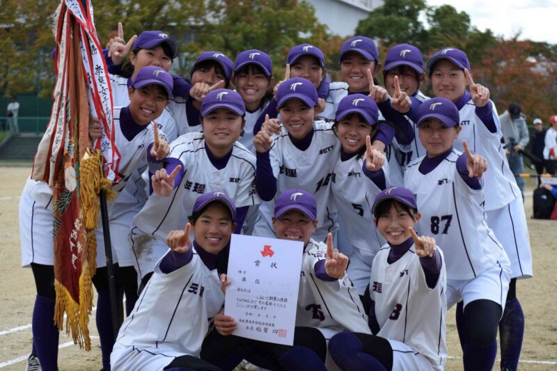 ソフトボール部:「第44回全国高等学校女子ソフトボール選抜大会奈良県予選」4年連続4回目となる優勝で全国選抜大会への出場権を獲得! 2025年11月15日(土) |クラブだより|ソフトボール部|体育系| 11月1~3日におこなわれた「第44回全国高等学校女子ソフトボール選抜大会奈良県予選」において、4年連続4回目となる優勝を達成することができました。今大会では、選手たちがそれぞれの良いところを思う存分に発揮してくれました。3月に開催される全国選抜大会に向けて、ここから挑戦が始まります。ソフトボールを愉しみつつ強いチームになるという理想を目指して、天理高校ソフトボール部に関わる仲間たち全員と頑張っていきたいと思います。 最後に、今大会の運営に関わってくださった皆さま、同じ高校ソフトボールを頑張る対戦校の皆さま、そして何より応援・サポートをしてくださる皆さまに最大限の感謝をしたいと思います。ありがとうございました。 試合結果 準々決勝 天 理 13×―0 合同B(桜井・県立商業・奈良文化) ※4回コールドゲーム 準決勝 天 理 15×―0 高田商業 ※3回コールドゲーム 決勝 天 理 16×―0 奈良女子 ※3回コールドゲーム 【 優勝 天理高等学校 (4年連続4回目) 】 優勝後の選手たち 試合前の円陣 ハイタッチ! 頼れる主将 « 前のページバスケットボール部:ウィンターカップ2025奈良県予選の結果