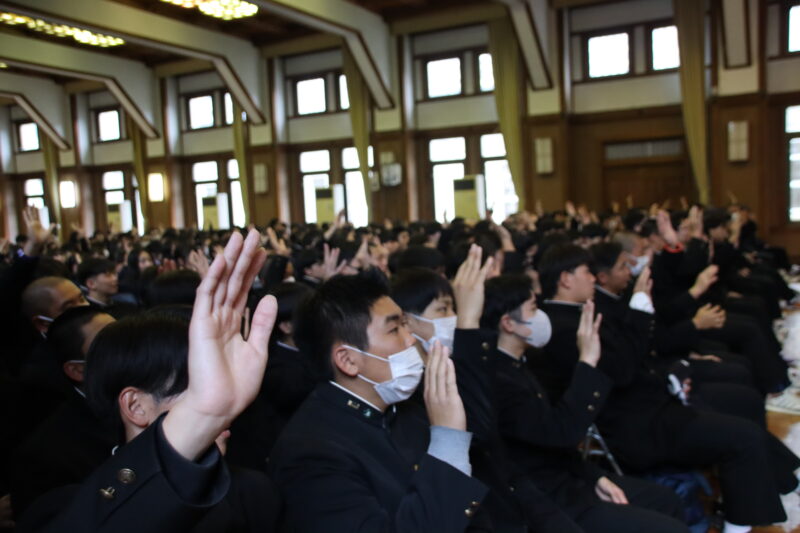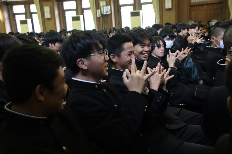 1年生 特設人権教育ホームルーム「共生社会の形成に向けて」 2025年11月29日(土) |行事| 11月26日、1年生を対象に特設人権ホームルームを実施し、講師として本校卒業生でラグビー部のコーチを務める木村豪志さんをお招きしました。 木村さんはラグビーの練習中に頸椎を脱臼する大きな怪我を負い、現在は車椅子で生活されています。長期間の入院生活を経験する中で多くの気づきを得られ、いまはその体験をもとに「共に生きる社会」について伝える活動を続けておられます。 講話では、怪我による生活の変化やそのときに感じた葛藤だけでなく、周囲の支えの大切さや、困難の中で学んだ前向きな考え方について丁寧にお話しいただきました。 生徒たちは、自分たちの生活を振り返りながら、相手を思いやることや支援について考える機会を得ることができました。 さらに、木村さんは、高校生に向けて、「相手も自分と同じ人間として尊重すること」「親切心がときに相手の負担になることもあるという気づき」「広い視野をもって互いに支え合える関係をつくること」など、共生社会を生きるうえで大切な5つの視点を示してくださいました。 今回の講話を通して、生徒たちは互いを尊重し支え合う姿勢について考えを深める貴重な時間となりました。 « 前のページ天高祭
