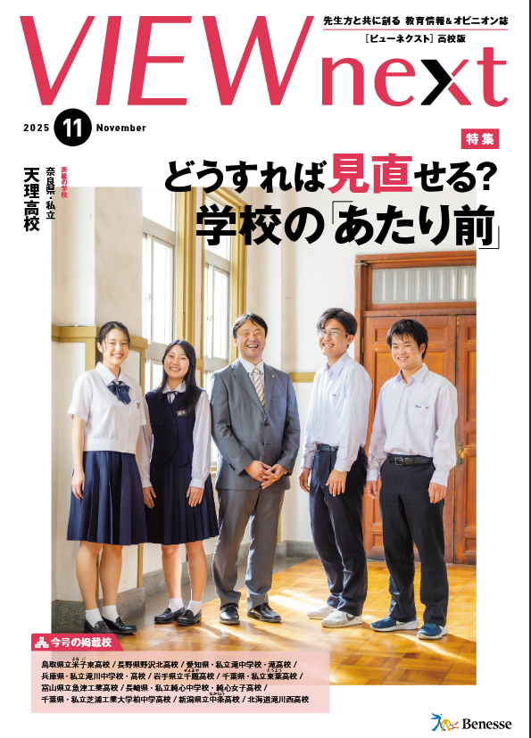 ベネッセ『VIEW next』11月号に本校進路指導部の取り組みが掲載されました 2025年12月20日(土) |お知らせ| ベネッセコーポレーションが発行している学校教育情報誌『VIEW next』2025年11月号に1・3類進路指導部長 吉田朋史教諭の写真が表紙に掲載され、Cover Story「生徒と創る学びの情景」に本校の取り組みが紹介されております。是非ご一読ください。 « 前のページ【お知らせ】令和7年度-年末年始の事務室閉室について