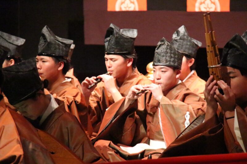 • 雅楽班:厳かな「管絃」に加え、煌びやかな装束を纏った「舞楽」を披露。伝統の重みを背負いつつ、若さ溢れる力強い演奏を届けました。