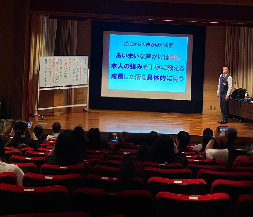 つとめ先懇談会を実施しました。 2025年09月29日(月) |お知らせ| 9月20日(土)に本校でつとめ先懇談会を実施しました。 昨年に引き続き、講師には株式会社マナベル代表取締役で天理高校ご卒業の吉川先生をお迎えしました。「あらゆる悩みを解決するセルフコントロールの習得」をテーマに、ご自身の経験を交えながら、心の持ち方や、教えていくための具体的な方法について、わかりやすくお話しいただきました。学びの多い貴重な時間となりました。 参加してくださった先生方、ありがとうございました。 « 前のページ【令和8年度入学生】BYODによる1人1台端末(生徒使用端末)の最低限の仕様について次のページ »体育祭来場に際して