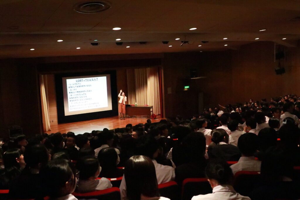 人権教育を実施しました 2025年10月29日(水) |イベント|お知らせ| 令和7年10月25日、本校階段教室にて人権教育講演を行いました。講師に井上鈴佳先生をお招きし、「あなたの身近にもいるLGBTQ+ 〜男女やLGBTだけじゃない!性のあり方は十人十色〜」のテーマでお話をいただきました。性の多様性について、井上先生ご自身の経験をもとにお話しいただき、大変貴重な時間になりました。後半には、井上先生への質疑応答もあり、より理解を深めることとなりました。 « 前のページ令和7年度 天理高等学校第二部卒業式の日程について