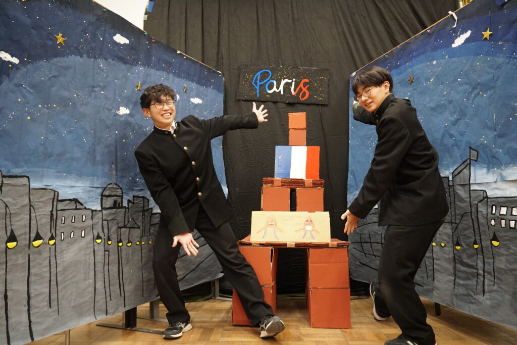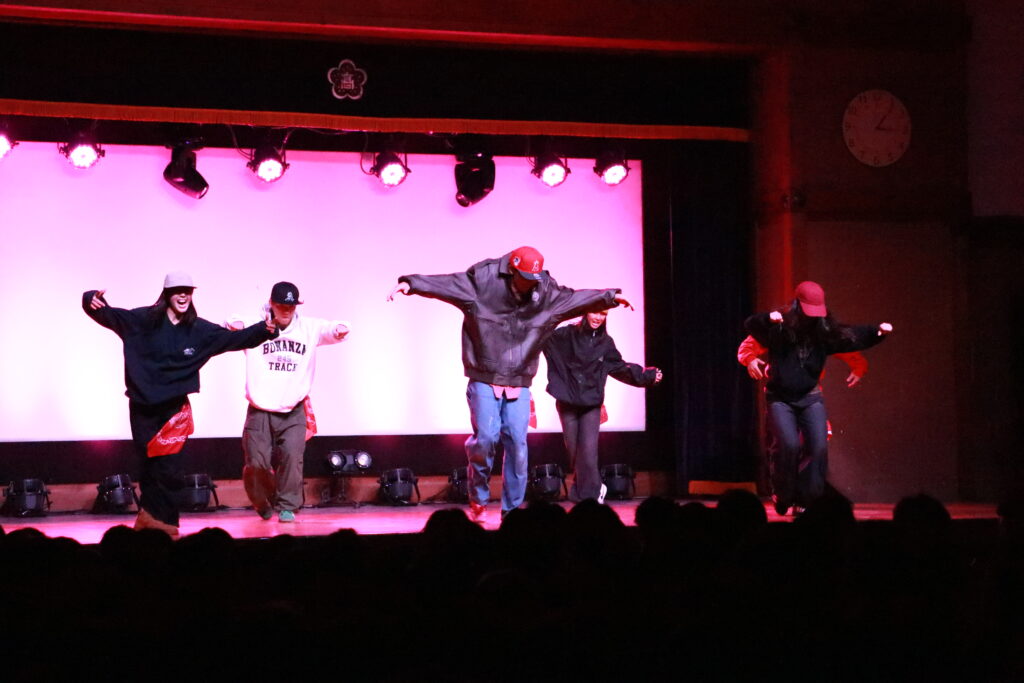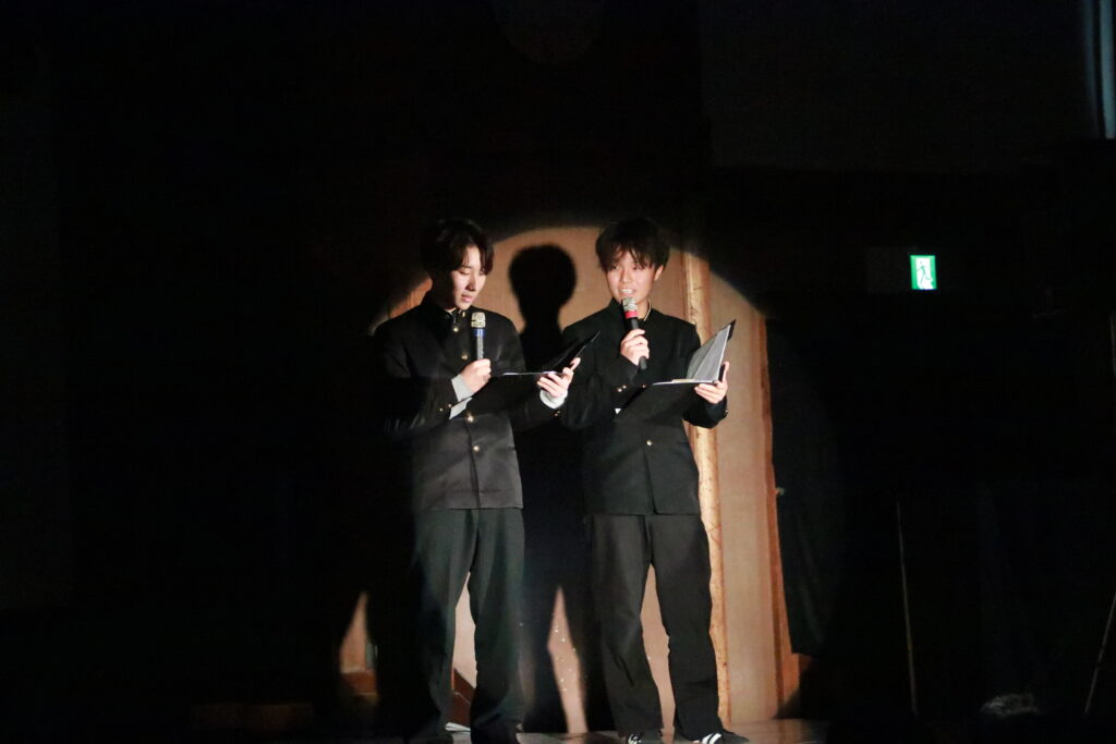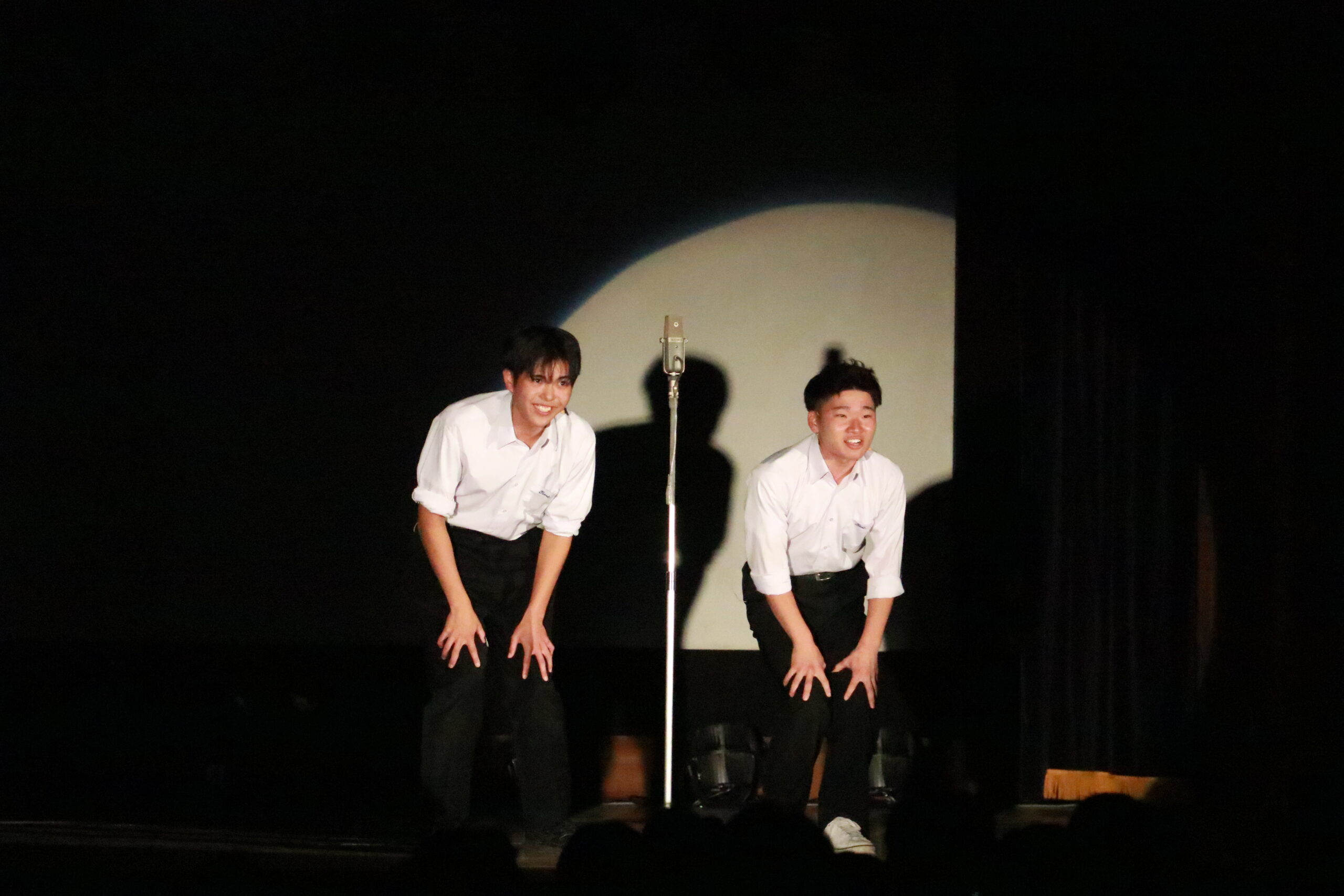 講堂で行われた「パフォーマンスの部」では、今年度から合唱部門が復活しました。2年生の3クラスが合唱を披露し、力強く時に繊細な歌声を届けました。フリー部門では、事前のオーディションで選ばれたお笑いセクション2組、歌セクション4名、ダンスセクション2組が出場し、大いに会場を盛り上げてくれました。