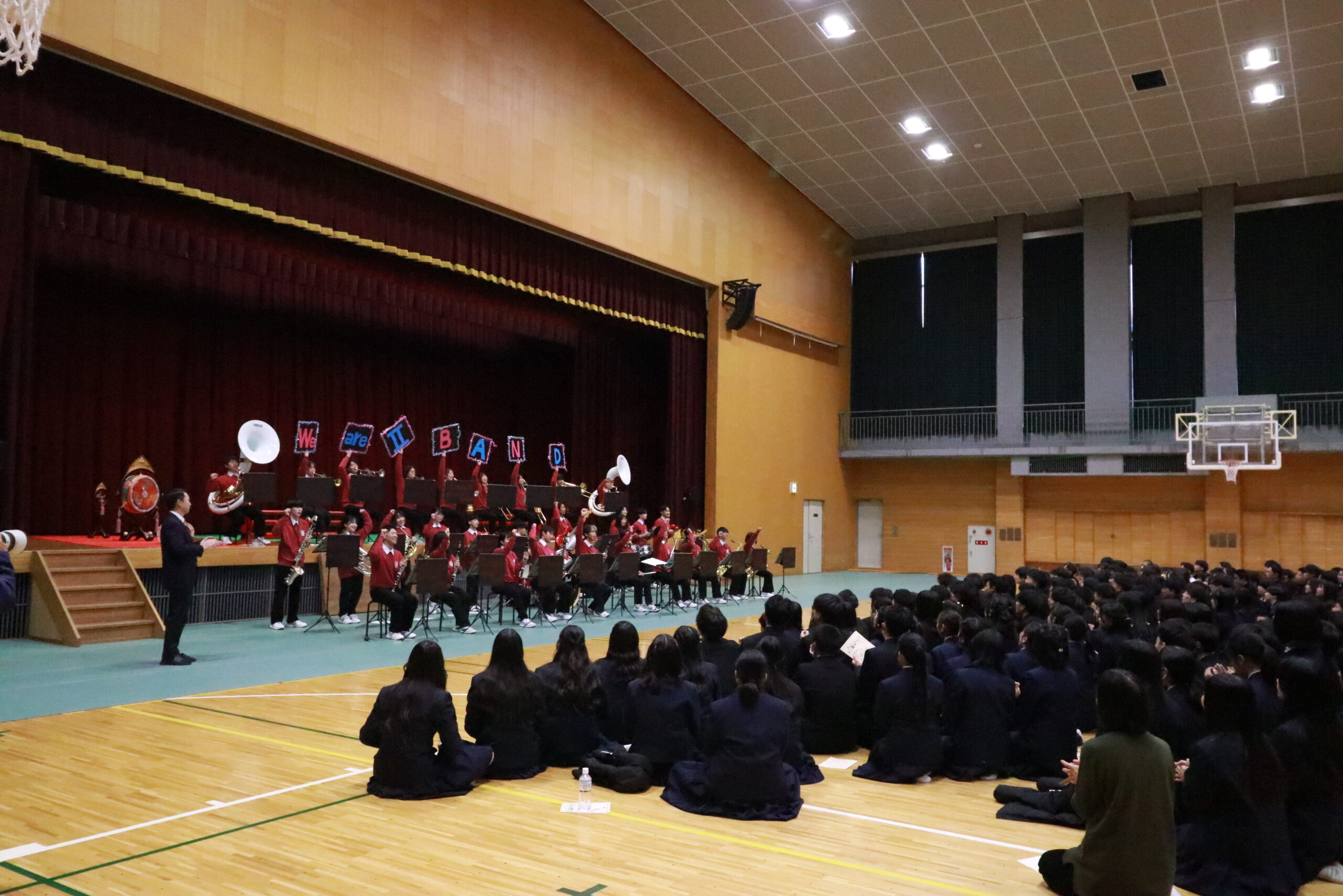 令和7年度文化祭が11月23日(日)に開催されました。本年も、吹奏楽部・雅楽部・バトントワリング部によるオープニングパフォーマンスで幕を開けました。「残酷な天使のテーゼ」の演奏・演技で華やかにオープニングを彩りました。本年も、「芸能の部」を総合体育館にて全校生徒で鑑賞した後、本校舎に移動し「作品展示の部」「パフォーマンスの部」を同時並行で実施しました。