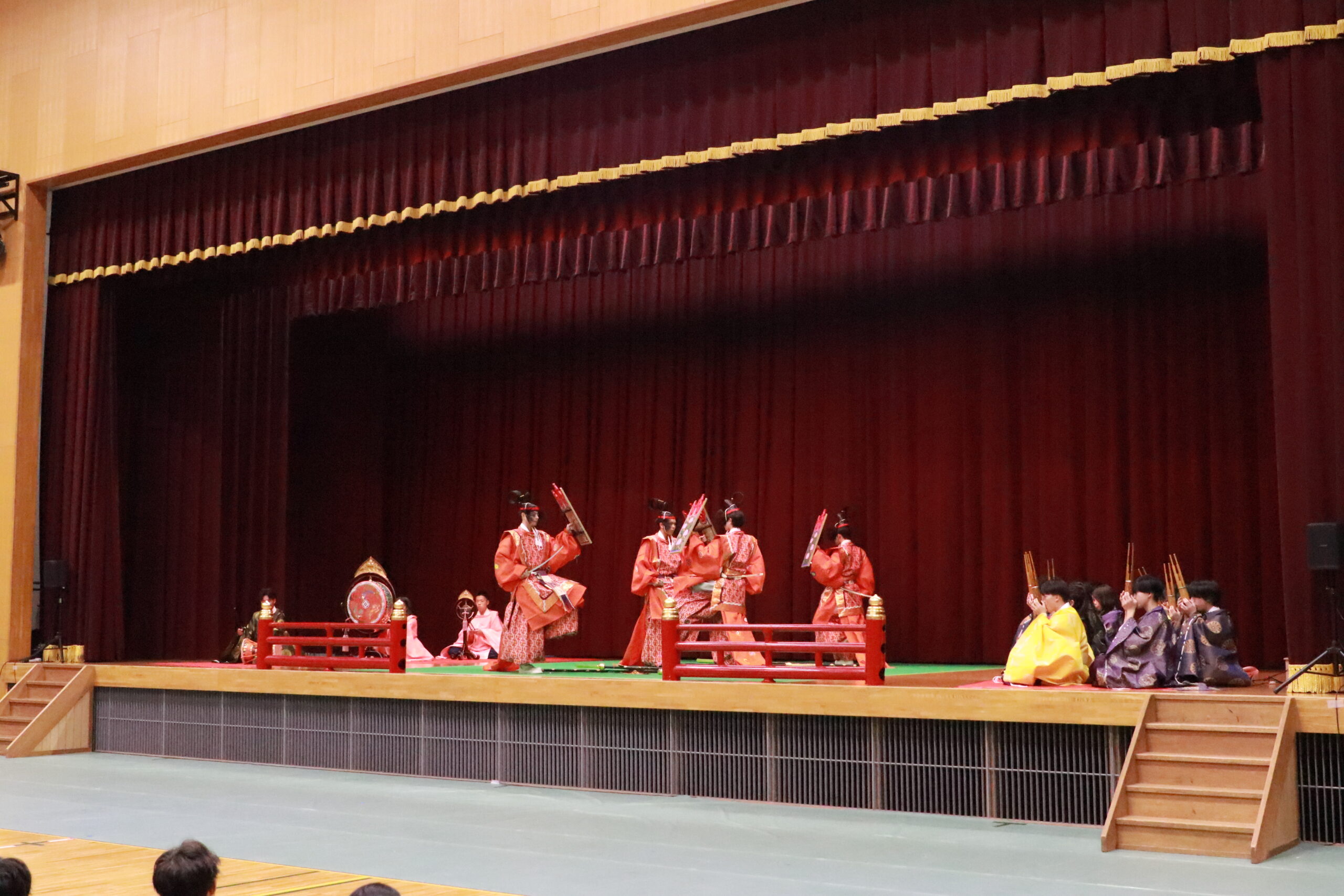 総合体育館で行われた「芸能の部」は、吹奏楽部から始まり、楽しい演奏で会場を盛り上げてくれました。続いて、雅楽部が優雅な旋律で日本の伝統文化を味合わせてくれました。最後に、バトン部が魅力的で息の合った演技で締めくくってくれました。