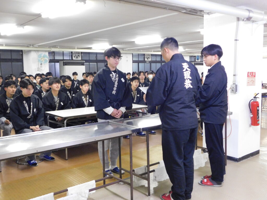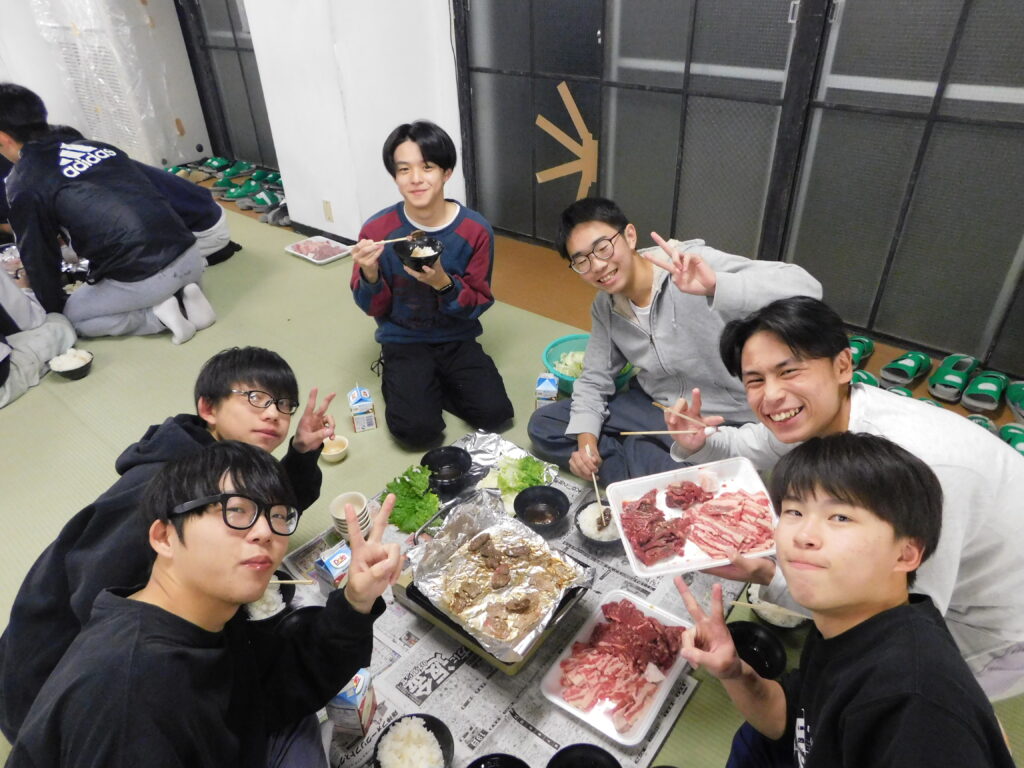 【陽心寮】令和7年度 自治会の交代&焼肉会 2025年12月20日(土) |お知らせ|学寮|陽心寮| 令和7年12月12日(金)、自治会の交代を行いました。旧自治会長からの挨拶や新自治会の発表がありました。また、先日実施したスポーツ大会の表彰を行いました。 令和7年度12月13日(土)、学期末の焼肉会を開催しました。準備・片付けは、1年生が担当しました。新旧自治会を中心に勇んで行い、滞りなく進めることができました。また、今回も農事部のご厚意でサニーレタスをいただきました。お肉と共に寮生一同美味しくいただきました。日頃の疲れを癒すことができました。 « 前のページ令和7年度 文化祭