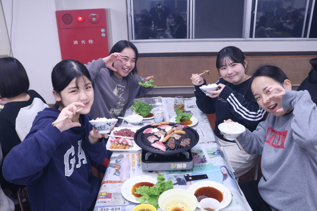 【さおとめ寮】令和7年度 2学期期末パーティー 2026年01月21日(水) |お知らせ|さおとめ寮| 12月13日(土)に2学期期末パーティーが行われました。 2学期間、勤務に学校と忙しい日々を乗り越えた自分たちへのご褒美として焼肉を食べました。 食事の間には有志による出し物を楽しみ、焼肉後は講堂で映画を鑑賞しました。 日々の疲れを労う良い会となりました。 « 前のページ【さおとめ寮】後期自治会次のページ »11月寮まなび・こかん様に続く会【さおとめ寮】