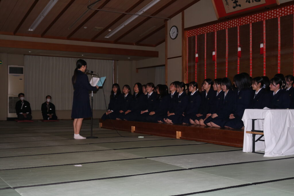 【さおとめ寮】令和7年度 卒寮式 2026年02月20日(金) |イベント|お知らせ|さおとめ寮| 2月15日(日)、卒寮式を行いました。 在寮生からは4年生への歌や送辞を贈り、4年生からは4年間お世話になった職員の方や幹事さん、ともに過ごした在寮生に感謝の気持ちを贈ってくれました。4年間を振り返ると、それぞれに思いが込みあがる日々があったと思います。式終わり、在寮生が花道を作り、卒寮生をおくり出しましたが、先輩後輩の絆、友情の涙でこちらも胸がいっぱいになりました。卒業まで残りわずか、おぢばで過ごすことのできる喜びに、出会いに感謝し、精一杯通っていただきたいです。 « 前のページ【さおとめ寮】令和7年度 予餞会次のページ »【陽心寮】令和7年度 卒寮式