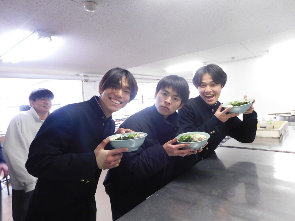午前中は荷物の運搬を行い、昼食には伝統となっているうどんをいただきました。